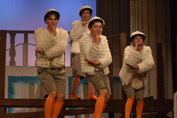Uma Scher as the sorceress Ursula was a show-stopper, as she taunted Ariel who she used as a pawn in her battle for Atlantica with the powerful King Triton (Peter Robelon). With Flotsam (Alex Klatsky) and Jetsam (Rowan Baer) circling her skirt and stirring up mischief they made a powerful trio, singing “Daddy’s Little Angels.”